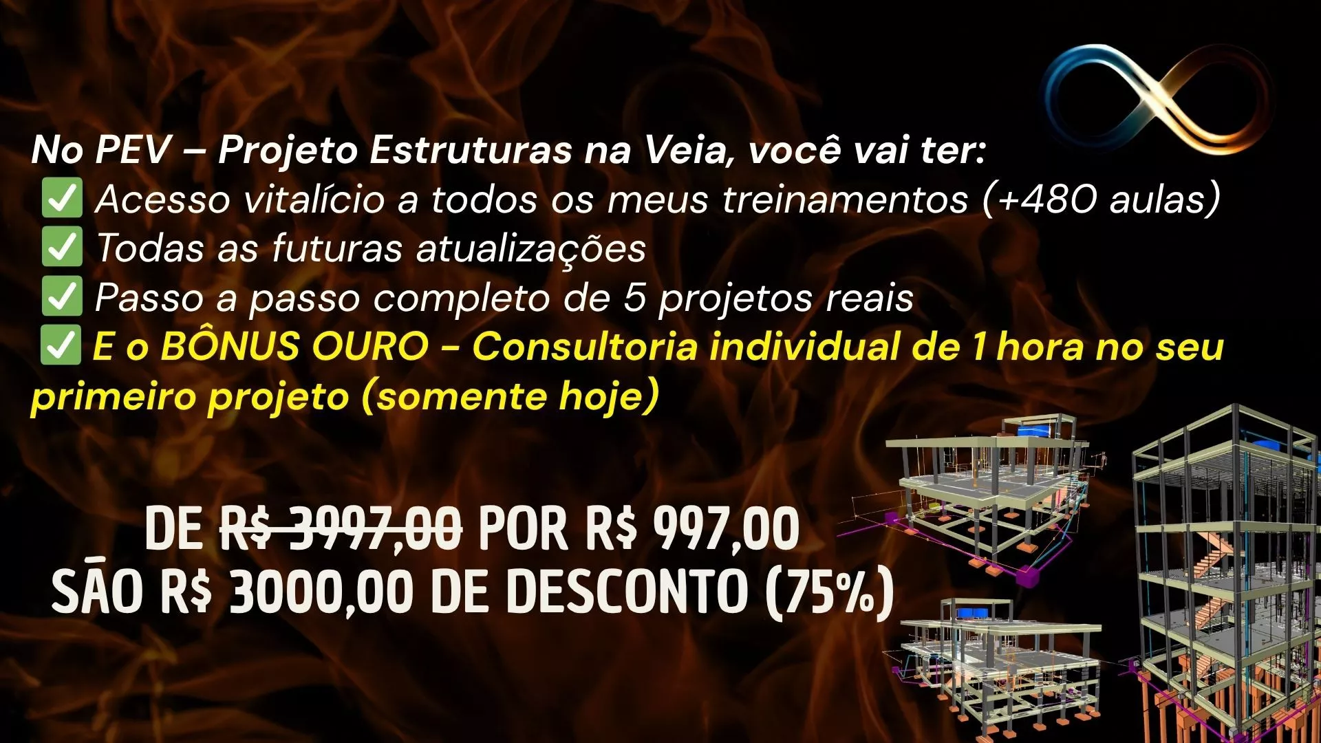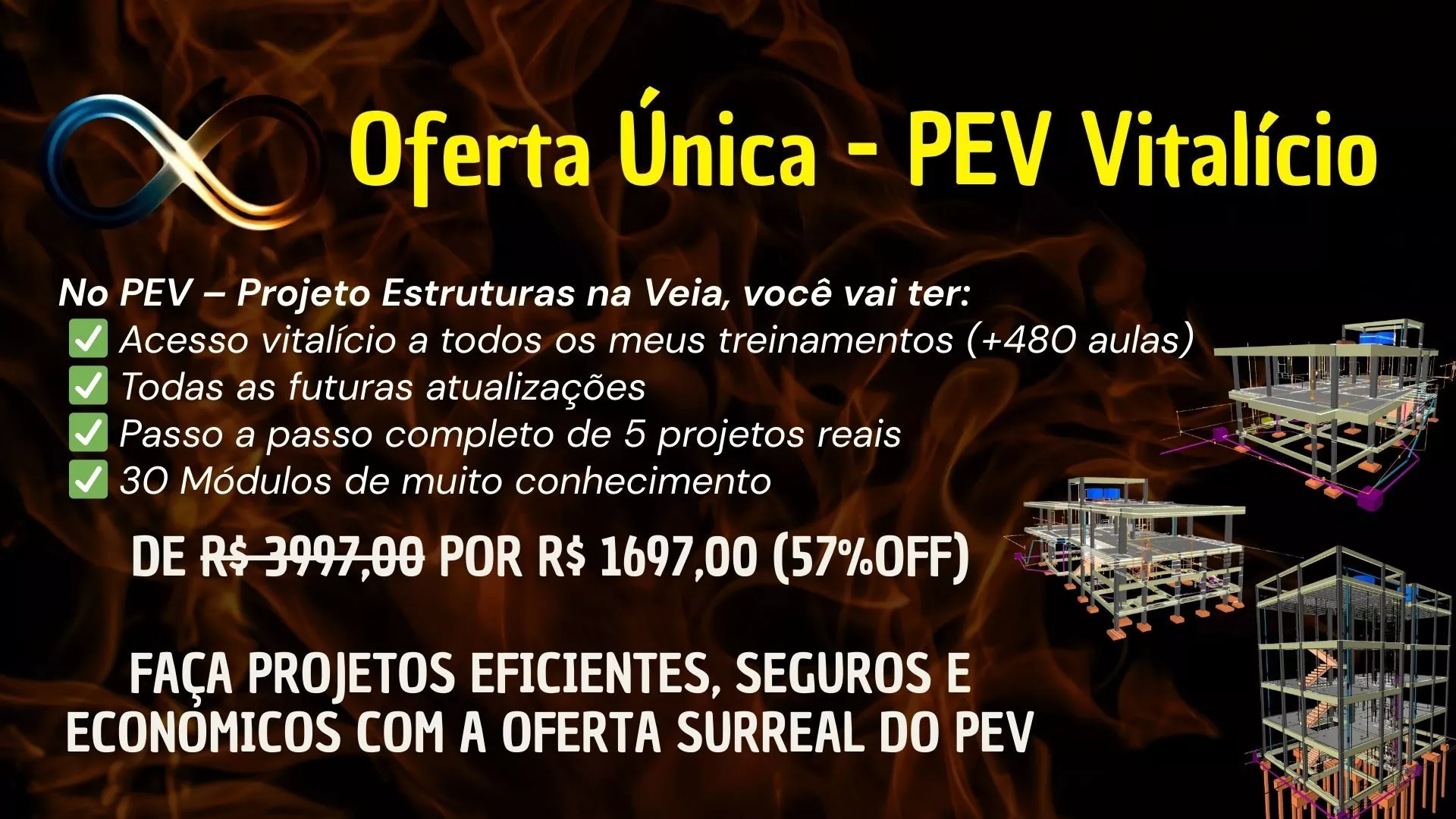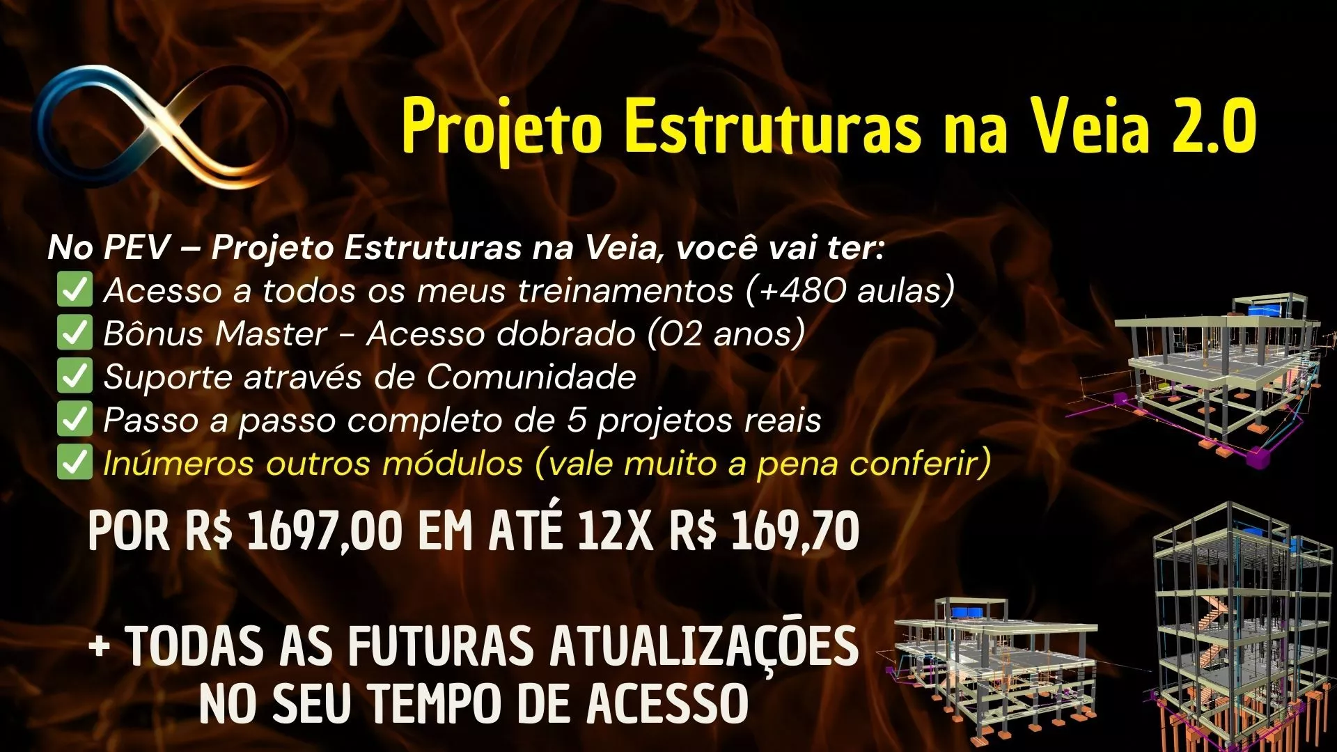 Módulos: Edição de armaduras, fundações profundas, piscinas, muro de arrimo, 05 projetos completos, Enciclopédia PEV (todas as lives) e muito mais.